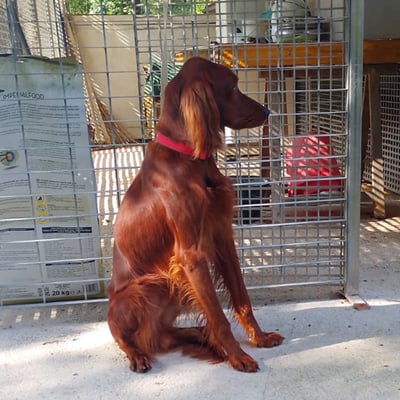 Een Ierse Setter is officieel een jachthond, vooral voor de jacht op vogels, een zogenaamde "staande hond" afkomstig uit Ierland. Hij is van gemiddelde grootte: 57-63 cm. schofthoogte met middellang mooi rood-bruin tot mahonierood haar met een mooie zijdeachtige glans. Dit soort beschrijving zal u overal en op Wikipedia veel uitgebreider vinden.